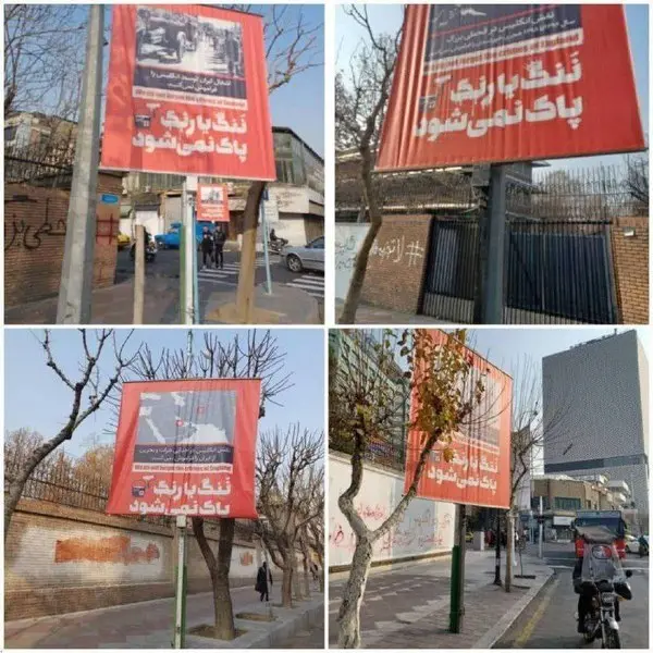 نصب بنرهایی علیه انگلیس در اطراف سفارت این کشور توسط شهرداری تهران+تصاویر