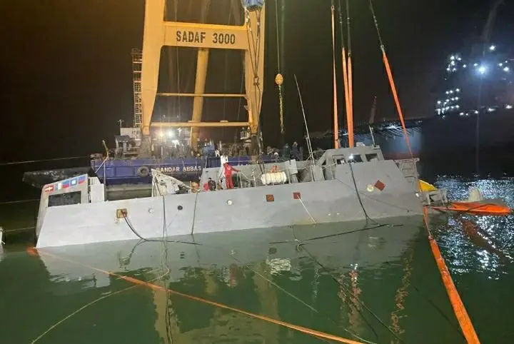 ناوچه سهند که ۱۷ تیر و در جریان تعمیرات در یک اسکله در نزدیکی بندرعباس دچار حادثه شده و غرق شده بود، دیشب از آب بیرون کشیده شد.