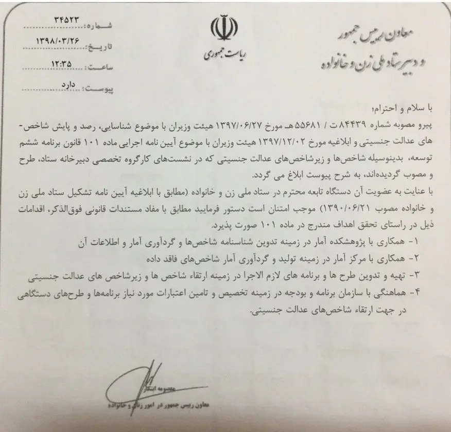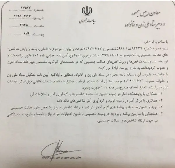 ابلاغ شاخص های عدالت جنسیتی به دستگاهها+ لینک جدول شاخص ها