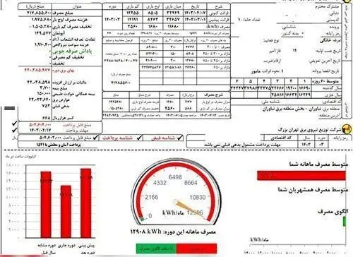 قبض برق ۵۰ میلیون تومانیِ یک مشترک خانگی نیاوراننشین که در خرداد امسال ۱۶ هزار کیلووات ساعت برق مصرف کرده. مصرف برق این خانه معادل یک محله با ۵۳ خانه است.
