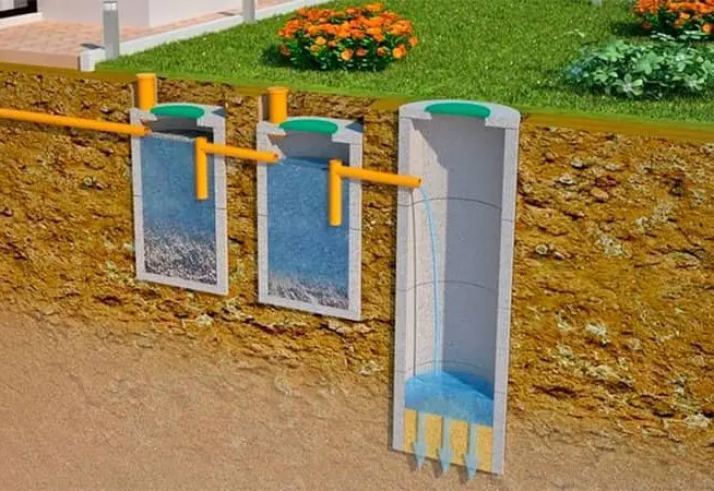 پس از ورود به چاه، آب فیلتر می شود و پس از آن به لایه های عمیق خاک می رود.چاه های جذبی برای استفاده در ماسه ها و لوم های شنی با مقدار کمی فاضلاب - حداکثر یک متر مکعب در روز - ایده آل هستند.