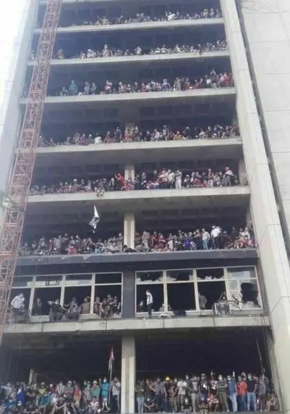 معترضان میگویند نیروهای دولتی در دور اول اعتراضات از این سازه برای تیراندازی به معترضان استفاده کردند. به همین دلیل آنها این ساختمان را اشغال کردند. بیش از 250 نفر از زمان آغاز اعتراضات عراق کشته شدهاند.