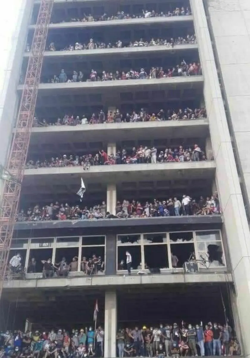 به گزارش سایت خبری و تحلیلی دیده بان ایران اسکلت یک برج نیمه ساخته در مرکز بغداد (معروف به میدان تحریر بغداد) به کانون مهم معترضان علیه حاکمان کنونی تبدیل شده است.
