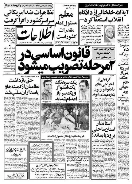 به گزارش سایت دیده بان ایران؛ اگر چه تیتر یک روزنامه اطلاعات در ۴۳ سال قبل چنین روزی چهارشنبه ۲ خرداد ۱۳۵۸ به مذاکرات مهم جلسه ۶ ساعته دیروز در حضور امام اختصاص دارد و برون داد آن این بود که قانون اساسی در دو مرحله تصویب میشود. اما در حقیقت خبر داغ روزنامه امروز استعفای آیت الله خلخالی از سمت دادگاه انقلاب است که متن این استعفانامه در اطلاعات منتشر شده را در دیدبان تاریخ می خوانید
