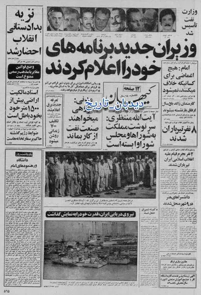 دولت ترمیم شد، کابینه بازرگان ترمیم شد، وزیران جدید برنامه های خود را اعلام کردند و وزارت نفت تاسیس شد. تیتر نخست سه روزنامه کیهان، جمهوری اسلامی و بامداد امروز در ۴۳ سال قبل چنین روزی شنبه ۷ مهر سال ۱۳۵۸ اختصاص دارد به ترمیم کابینه دولت موقت جمهوری اسلامی.