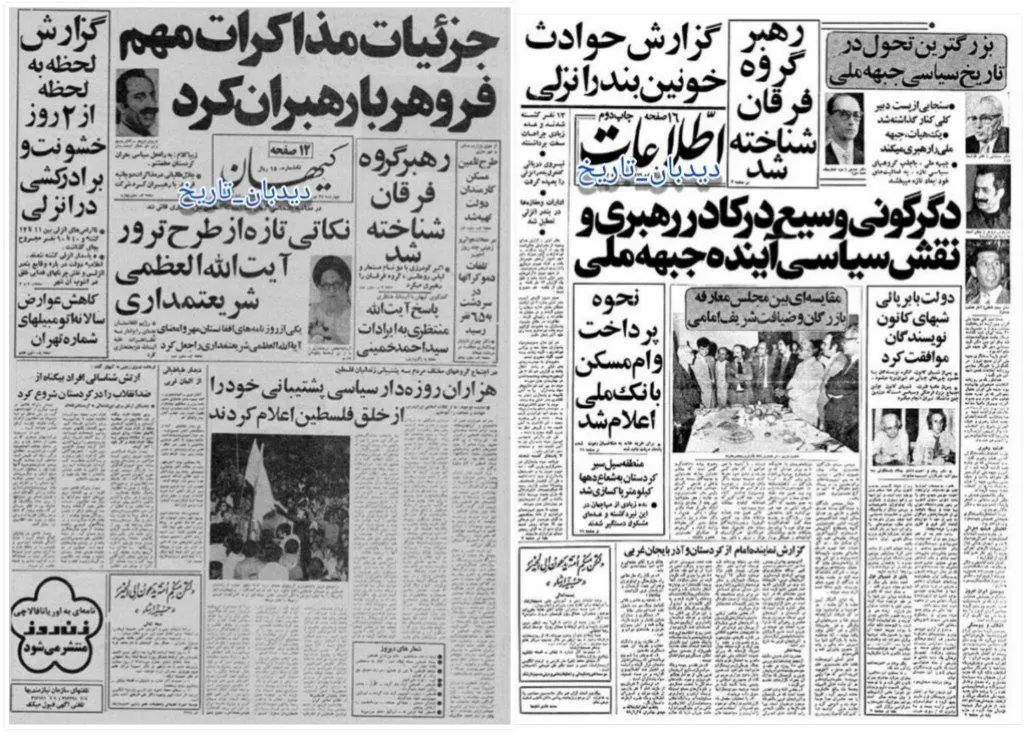 به گزارش سایت دیدهبان ایران؛ صفحات اول دو روزنامه اطلاعات و کیهان روز چهارشنبه ۲۵ مهر سال ۱۳۵۸ را از نظر می گذرانید. اطلاعات که در نوبت چاپ دوم و در ۱۶ صفحه روانه دکه ها شده بود از دگرگونی وسیع در کادر رهبری و نقش سیاسی آینده جبهه ملی خبر داده است. شناسایی رهبر گروه فرقان، موافقت دولت با برپایی شبهای کانون نویسندگان ایران از دوم تا دهم آبان در زمین چمن دانشگاه تهران و گزارشی از حوادث خونین بندرانزلی در کنار تصویری از مقایسه بین مجالس معارفه بازرگان و ضیافت شریف امامی از دیگر تیترهای مهم این روزنامه عصرگاهی کشور هستند. اما کیهان ۱۲ صفحه ای امروز در کنار خبری از مصاحبه اختصاصی این روزنامه با آیت الله العظمی شریعتمداری که در آن نکات تازه ای از طرح ترور ایشان برملا شده است، جزئیات مذاکرات مهم فروهر با رهبران کرد را بعنوان تیتر اول خود انتخاب کرده است. گزارش لحظه به لحظه از دو روز خشونت و برادرکشی در انزلی و پاسخ آیت الله منتظری به ایرادات سیداحمد خمینی از اهم تیترهای دیگر این روزنامه می باشند.