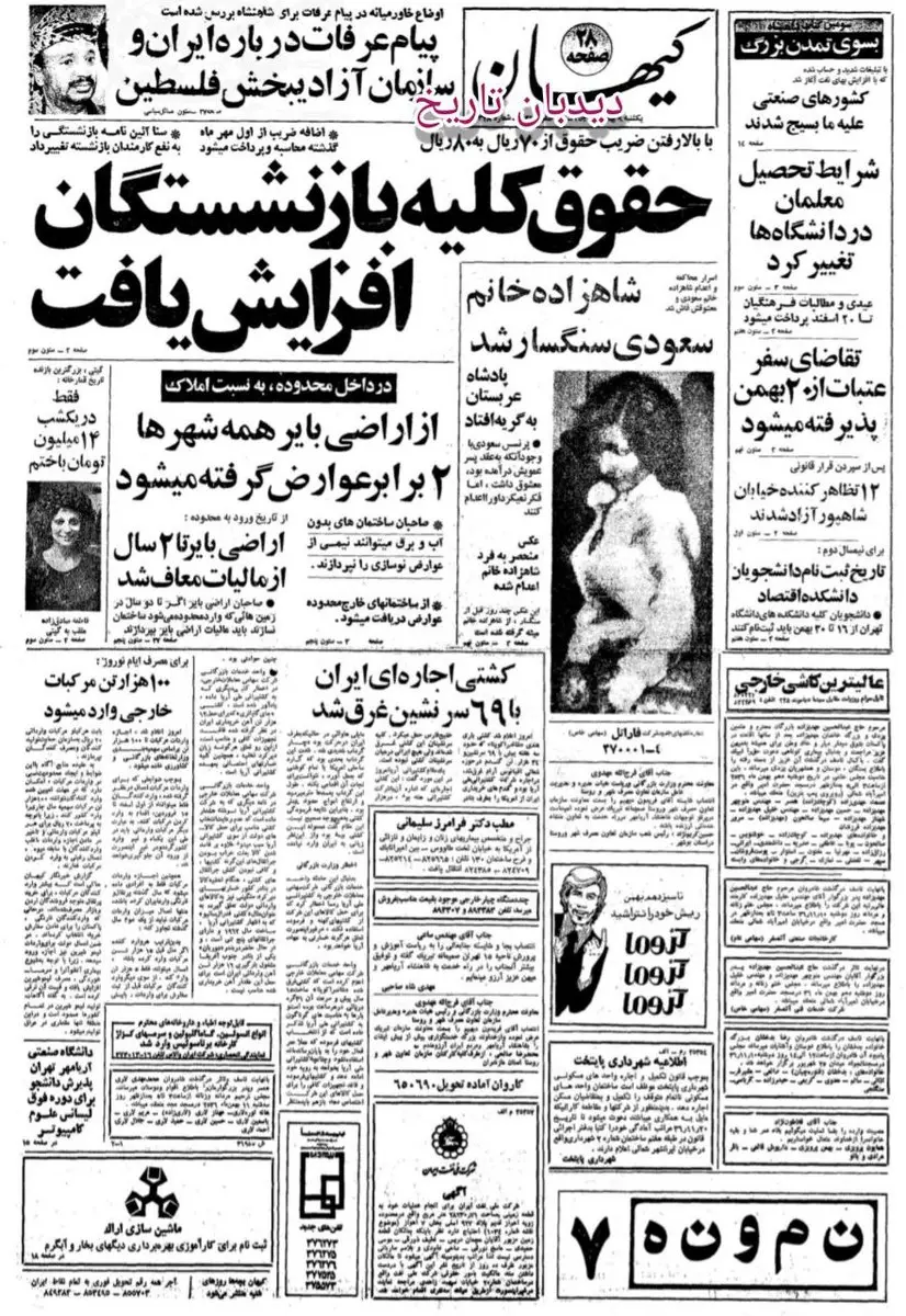 تیتر مهم دیگر روزنامه به پیام یاسر عرفات به محمدرضا پهلوی درباره ایران و سازمان آزادیبخش فلسطین و بررسی اوضاع خاورمیانه اختصاص دارد.
