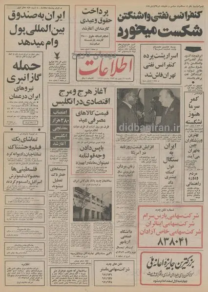 آخر وقت امروز جمشید آموزگار وزیر دارائی اعلام کرد ماه پیش به هنگام تشکیل کنفرانس اوپک در تهران، شاهنشاه خطاب به وزرای شرکت کننده و همچنین در مصاحبه های مطبوعاتی اعلام فرمودند که کشورهای صادر کننده نفت باید از طریق تشکیل یک بانک و یا سرمایه گذاریهای مستقیم به توسعه منابع طبیعی و رفع مشکلات مالی کشورهای مصرف کننده کمک نمایند.