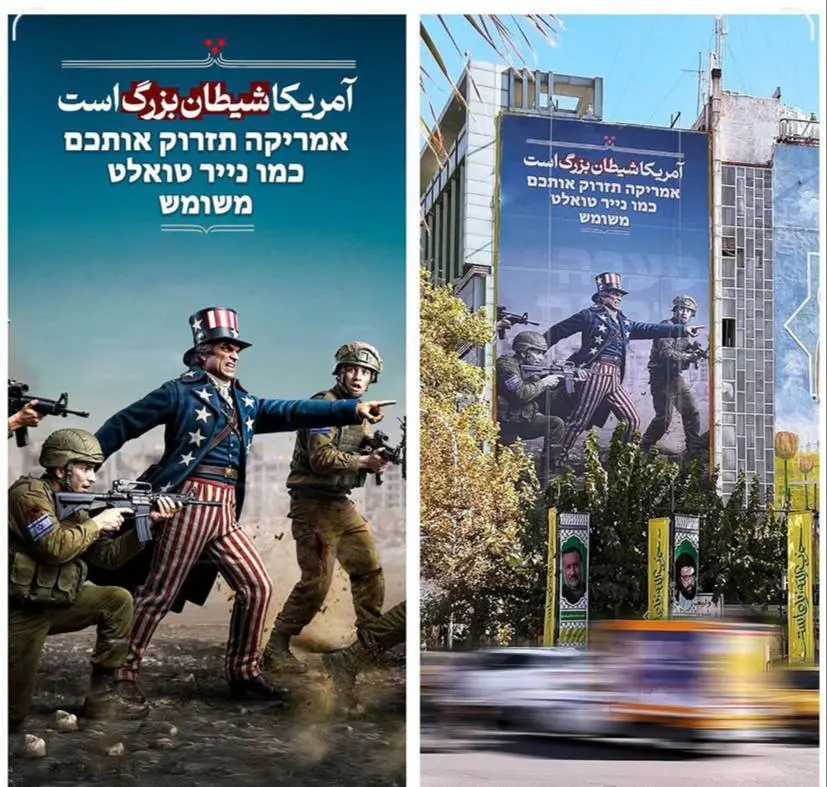 این اثر با مضمون همراهی و حمایت آمریکا از رژیم صهیونیستی در جنایت و جنگهای این رژیم به همراه شعار «آمریکا شیطان بزرگ است»، رونمایی شده است.