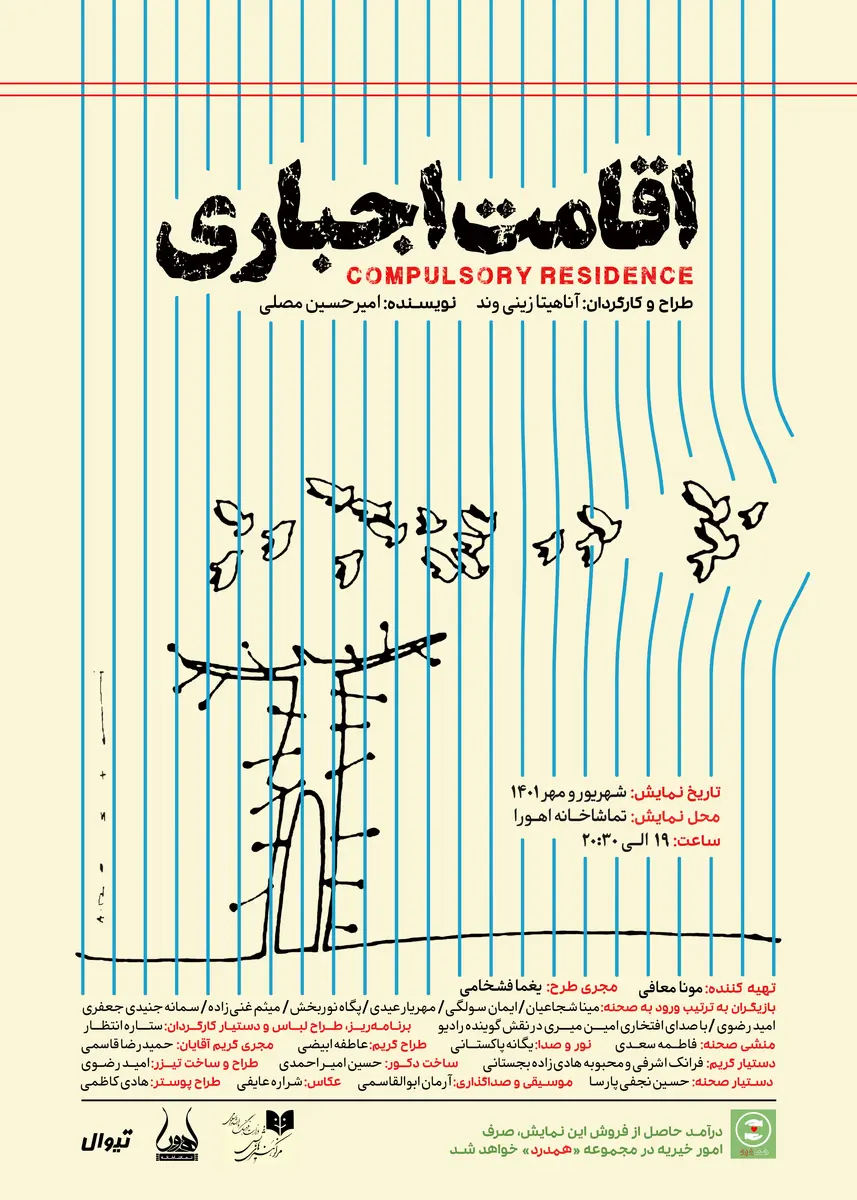 نمایش «اقامت اجباری» به کارگردانی آناهیتا زینیوند از فردا در تماشاخانه «اهورا» به روی صحنه میرود.